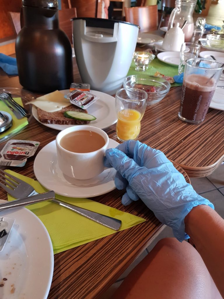 Guten Mooooorgen in der „Uckerwelle“ Prenzlau!Am Buffet sind zum Infektionsschutz vor Corona Handschuhe Pflicht… Mundschutz? Nö. Drahtesel satteln und auf geht es in unsere 4. Etappe nach Prenzlau. Gleich nebenan ist ein Supermarkt. Dort decken wir uns noch mit ein paar Leckerlies inklusive Piccolo ein und dann „Kette rechts!“ Snackpause in Damerow14 Uhr – Ankunft in PasewalkEinfahrt zum Lokschuppen PommeraniaRegenerationsschlaf heute mit angezogenen Beinen 🙂 Draisinefahrt mit restlicher MuskelkraftAuf Entdeckungstour im LokschuppenUnd in der Abendsonne dann… Mmmmh… Und gute Nacht! Eine Empfehlung wert! Danke Gabi, war lecker!
