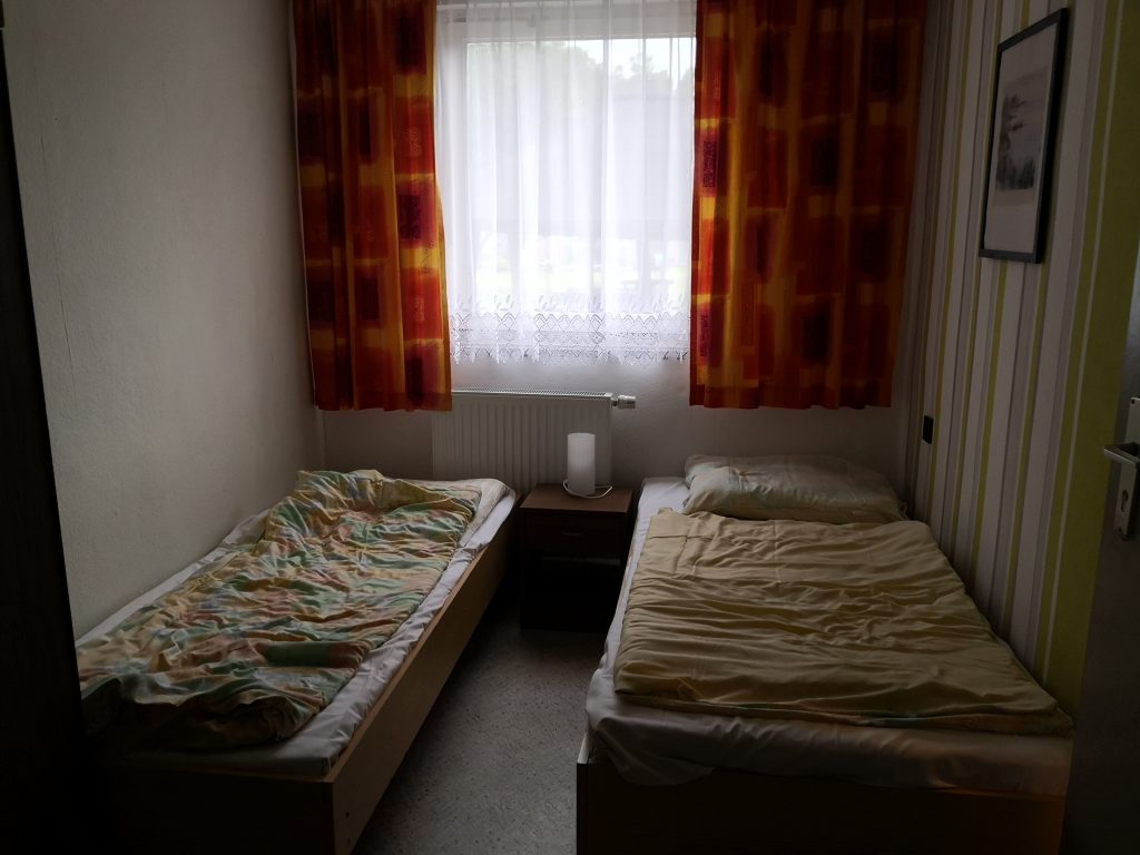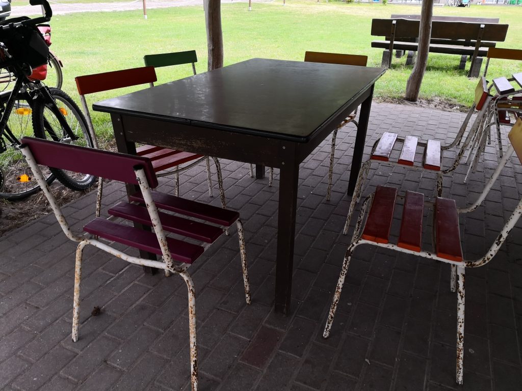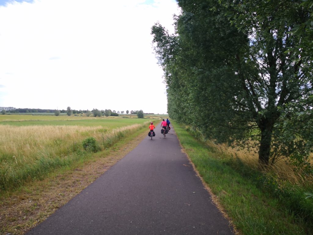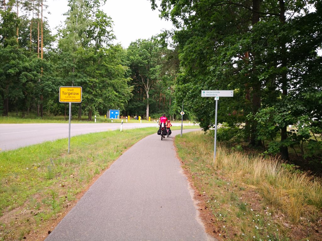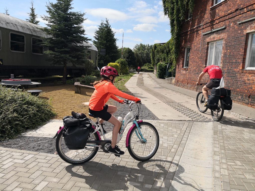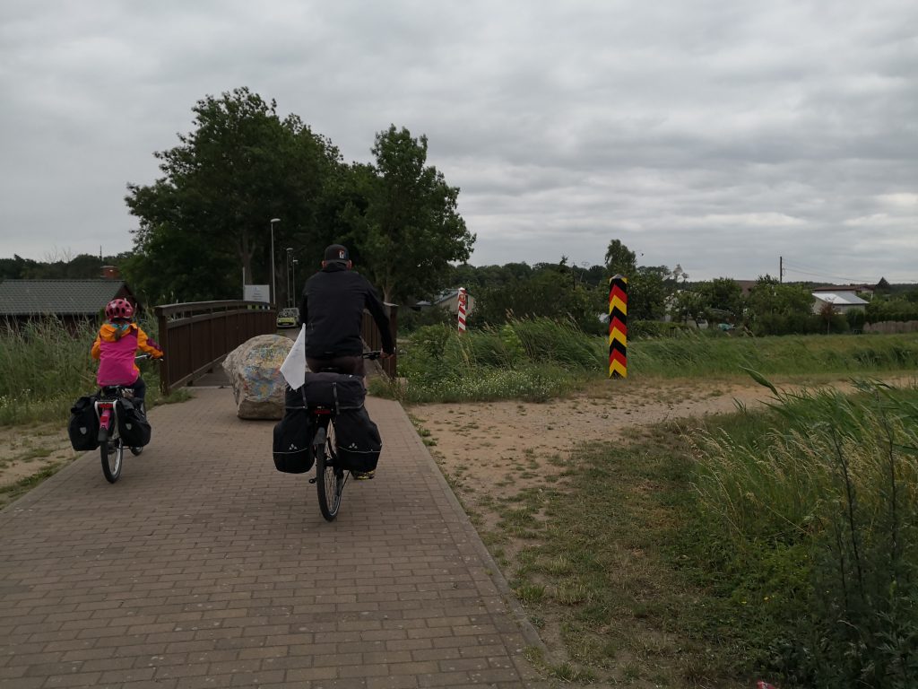 30. Juni 2020… In der großen Halle des Lokschuppens haben wir gefrühstückt. Der kleine Speisewagen war leider zu eng in der Corona-Zeit. Es ist etwa 9:30 Uhr – wir rollen los in Richtung Ückermünde. Dort müssen wir um 15:10 Uhr auf der Fahrradfähre nach Kamminke (Usedom) sein. 10 Kilometer vor Ückermünde… zufällig während einer Snackpause entdeckt: Reifenschaden am Hinterrad von Markos Bulliden. Und das bei etwa 20 Kilogramm Zusatzgewicht auf dem Hinterrad. Jetzt heißt es Daumen drücken, daß a) der Reifen auf den letzten Kilometern nicht platzt b) wir in Ückermünde einen geöffneten Fahrradladen finden c) dieser Fahrradladen die relativ seltene Reifengröße 29 Zoll, Reifenbreite 225 auf Lager hat (wir sind lediglich auf mögliche Schlauchschäden vorbereitet, nicht aber auf derartige Schäden an der Reifendecke). Der Reifen hält…Fahrradfähre der Reederei Peters. In diesem Jahr sehr leer. Das Rad ist inzwischen repariert bzw. ersetzt… Puuuuh, Glück gehabt! Pünktlich um 15:10 Uhr legen wir ab. 16:30 Uhr in Kamminke gelandet, entscheiden wir uns wiederholt für den Weg über Polen, um von dort aus mit dem Zug weiter nach Trassenheide zu fahren – unsere letzte Übernachtungstätte auf dieser Tour. Ziel ist das Feriencamp Trassenheide. Das Haus „Käuzchenkuhle“ im Feriencamp Trassenheide. Es wird leider schlimmer, als wir es uns vorgestellt hatten :-)…